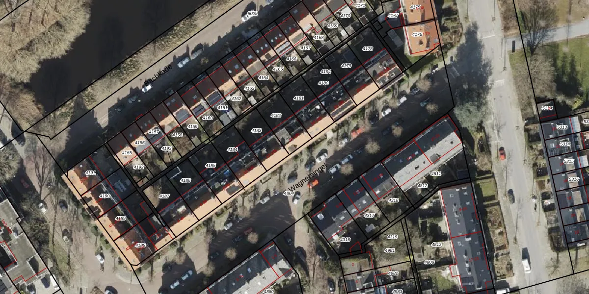 Het perceel waarop Wagnersingel 14 staat heeft een oppervlakte van 184 m². Dit is een middelgroot perceel. De perceeloppervlakte wordt geregistreerd door het Kadaster. Gedetailleerde informatie over de maten van dit perceel kunt u vinden in het rapport Kadastrale kaart met maatvoering van Wagnersingel 14.