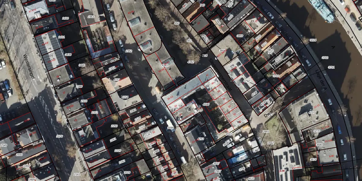 Het adres ligt op het perceel GNG00-K-4596, dat zich in de kadastrale gemeente Groningen bevindt. Het perceel is met 988 m² relatief groot. Het gemiddelde ligt in de kadastrale gemeente Groningen op 772,77 m². De grootste perceeloppervlakte in de kadastrale gemeente is 31,8 ha. De kleinste oppervlakte bedraagt 0 m². Op het perceel zijn 19 adressen aanwezig. In de Basisregistratie Kadaster (BRK) werden de grenzen van het perceel geregistreerd op 03-06-2016.