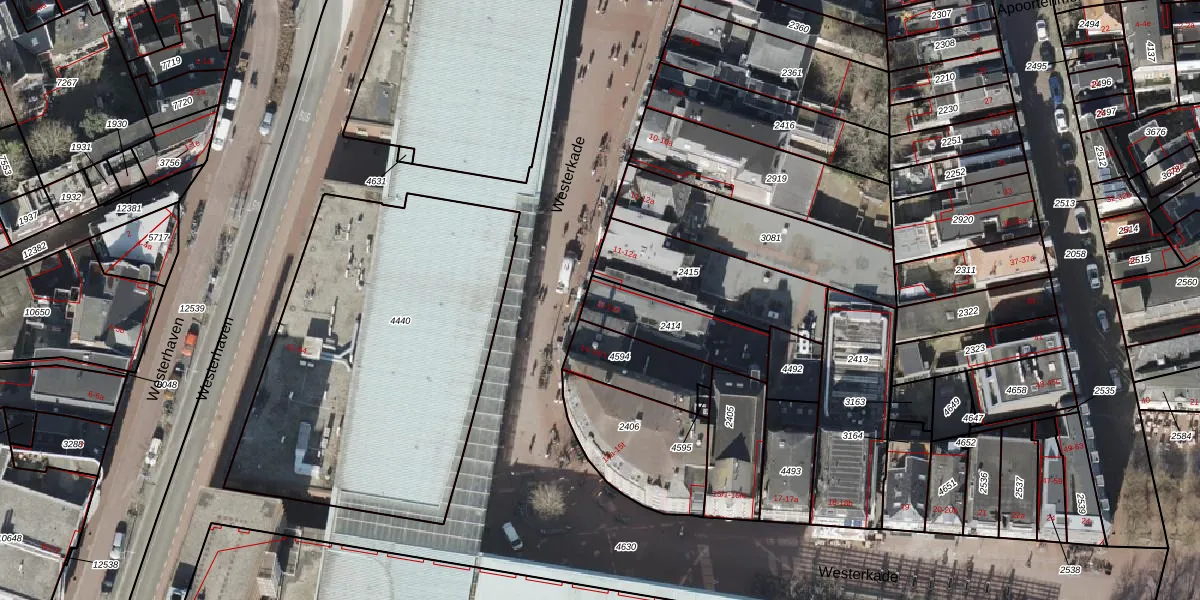 Westerkade 13-a is gelegen op kadastraal perceel GNG00K2414. Deze kadastrale aanduiding is uniek en wordt gebruikt door het Kadaster om eigendomsrechten en andere zakelijke rechten vast te leggen. Het perceel maakt onderdeel uit van de kadastrale gemeente Groningen.