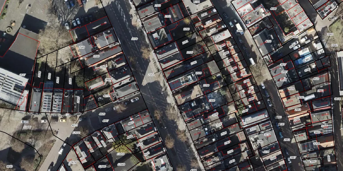 Het adres is gelegen op perceel 2029 in de sectie K en de kadastrale gemeente Groningen. De kadastrale aanduiding is aldus GNG00-K-2029. Het perceel is 244 m² groot. Dat is kleiner dan de gemiddelde perceeloppervlakte in Groningen, dat op 771,43 m² ligt. Het grootste perceel in de kadastrale gemeente is 31,8 ha. Het kleinste perceel heeft een oppervlakte van 0 m². Er zijn 5 adressen aanwezig op het perceel. In de Basisregistratie Kadaster (BRK) werden de grenzen van het perceel geregistreerd op 20-06-2003.