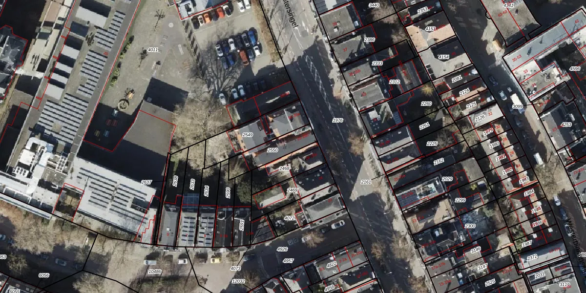 Het adres is gelegen op perceel 2550 in de sectie K en de kadastrale gemeente Groningen. De kadastrale aanduiding is aldus GNG00-K-2550. Het perceel is kleiner dan gemiddeld in Groningen. Het perceel is 214 m² groot, terwijl het gemiddelde ligt op 772,77 m². De grootste perceeloppervlakte in de kadastrale gemeente is 31,8 ha. De kleinste oppervlakte bedraagt 0 m². Er zijn 4 adressen aanwezig op het perceel. De huidige grenzen van het perceel zijn digitaal in de Basisregistratie Kadaster (BRK) geregistreerd op 20-06-2003.
