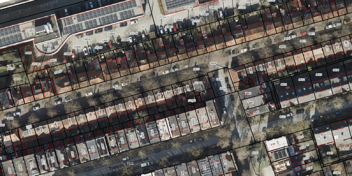 Het perceel waarop Willemstraat 33 staat heeft een oppervlakte van 78 m². Dit is een klein perceel. De perceeloppervlakte wordt geregistreerd door het Kadaster. Gedetailleerde informatie over de maten van dit perceel kunt u vinden in het rapport Kadastrale kaart met maatvoering van Willemstraat 33.