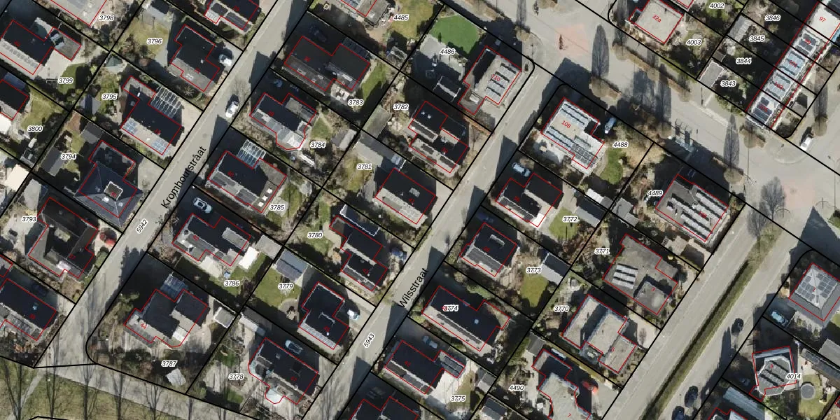 Het perceel waarop Wilsstraat 41 staat heeft een oppervlakte van 443 m². Dit is een groot perceel. De perceeloppervlakte wordt geregistreerd door het Kadaster. Gedetailleerde informatie over de maten van dit perceel kunt u vinden in het rapport Kadastrale kaart met maatvoering van Wilsstraat 41.