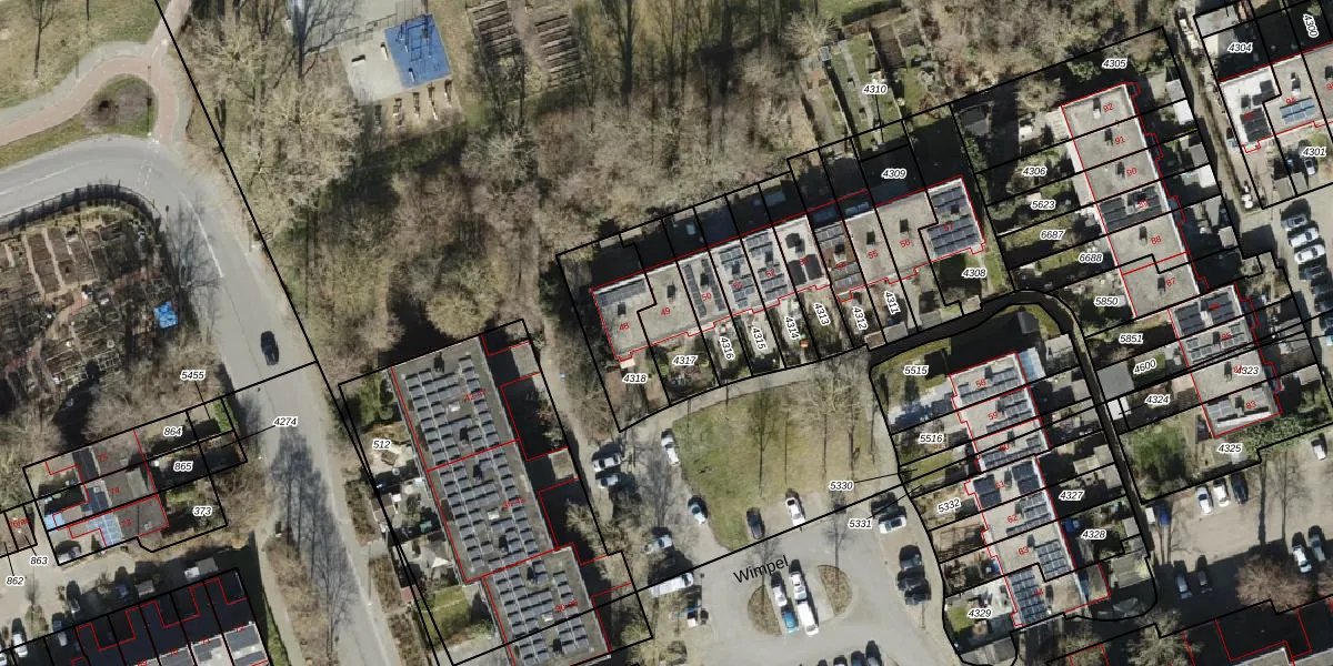 Wimpel 49 is gelegen op kadastraal perceel GNG01AC4317. Deze kadastrale aanduiding is uniek en wordt gebruikt door het Kadaster om eigendomsrechten en andere zakelijke rechten vast te leggen. Het perceel maakt onderdeel uit van de kadastrale gemeente Groningen.