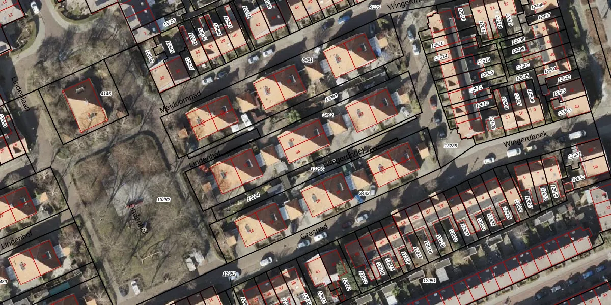 Het perceel waarop Wingerdhoek 34 staat heeft een oppervlakte van 1175 m². Dit is een zeer groot perceel. De perceeloppervlakte wordt geregistreerd door het Kadaster. Gedetailleerde informatie over de maten van dit perceel kunt u vinden in het rapport Kadastrale kaart met maatvoering van Wingerdhoek 34.
