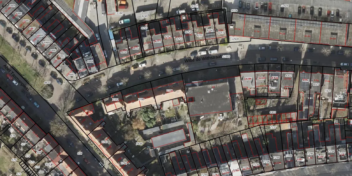 Het perceel waarop Witte de Withstraat 20-b staat heeft een oppervlakte van 246 m². Dit is een middelgroot perceel. De perceeloppervlakte wordt geregistreerd door het Kadaster. Gedetailleerde informatie over de maten van dit perceel kunt u vinden in het rapport Kadastrale kaart met maatvoering van Witte de Withstraat 20-b.