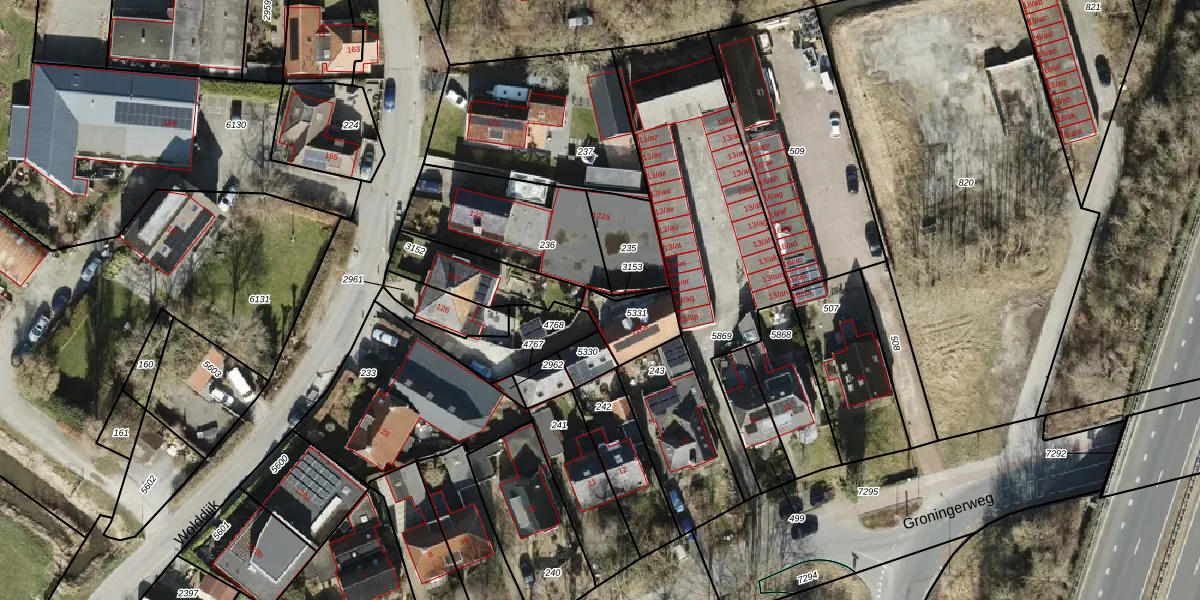 Wolddijk 126-a is gelegen op kadastraal perceel GNG01AB5331. Deze kadastrale aanduiding is uniek en wordt gebruikt door het Kadaster om eigendomsrechten en andere zakelijke rechten vast te leggen. Het perceel maakt onderdeel uit van de kadastrale gemeente Groningen.