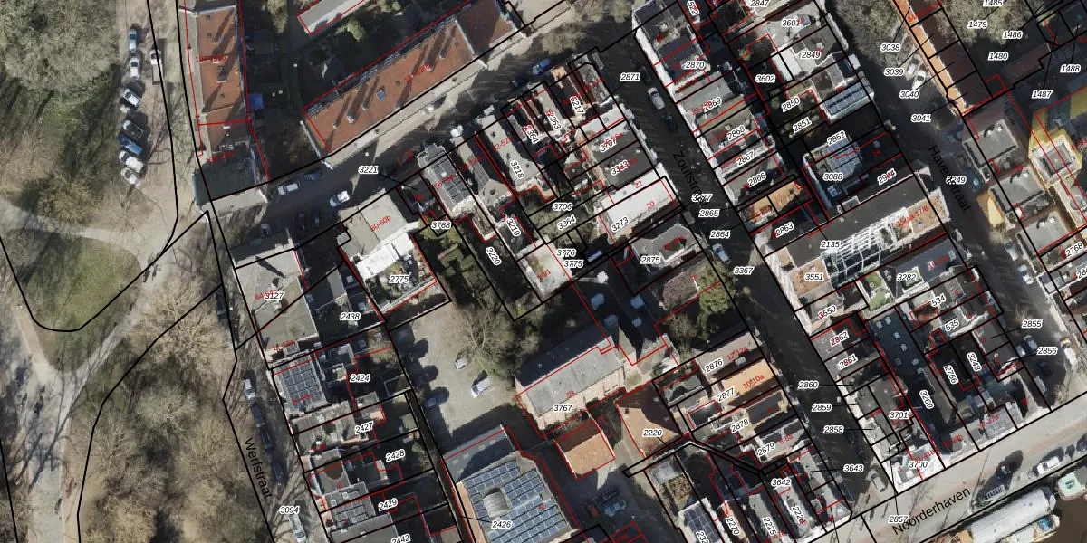 Het adres is gelegen op perceel 3775 in de sectie E en de kadastrale gemeente Groningen. De kadastrale aanduiding is aldus GNG00-E-3775. Het perceel is 95 m² groot. Dat is kleiner dan de gemiddelde perceeloppervlakte in Groningen, dat op 770,7 m² ligt. Het grootste perceel in de kadastrale gemeente is 31,8 ha. Het kleinste perceel heeft een oppervlakte van 0 m². Dit is het enige adres dat aanwezig is op het perceel. In de Basisregistratie Kadaster (BRK) werden de grenzen van het perceel geregistreerd op 08-09-2023.