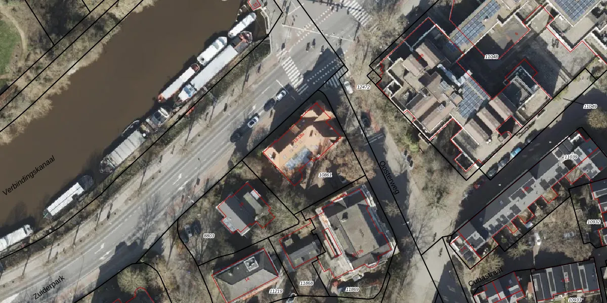 Het adres is gelegen op perceel 10861 in de sectie B en de kadastrale gemeente Groningen. De kadastrale aanduiding is aldus GNG00-B-10861. De gemiddelde perceeloppervlakte in de kadastrale gemeente Groningen is 771,11 m². Dit perceel is met zijn 883 m² dus groter dan gemiddeld. De grootste perceeloppervlakte in de kadastrale gemeente is 31,8 ha. De kleinste oppervlakte bedraagt 0 m². Er zijn 17 adressen aanwezig op het perceel. De huidige grenzen van het perceel zijn digitaal in de Basisregistratie Kadaster (BRK) geregistreerd op 17-07-2006.
