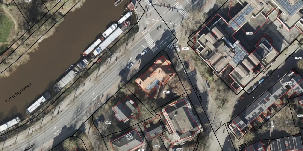 Het adres is gelegen op perceel 10861 in de sectie B en de kadastrale gemeente Groningen. De kadastrale aanduiding is aldus GNG00-B-10861. De gemiddelde perceeloppervlakte in de kadastrale gemeente Groningen is 771,11 m². Dit perceel is met zijn 883 m² dus groter dan gemiddeld. De grootste perceeloppervlakte in de kadastrale gemeente is 31,8 ha. De kleinste oppervlakte bedraagt 0 m². Er zijn 17 adressen aanwezig op het perceel. In de Basisregistratie Kadaster (BRK) werden de grenzen van het perceel geregistreerd op 17-07-2006.