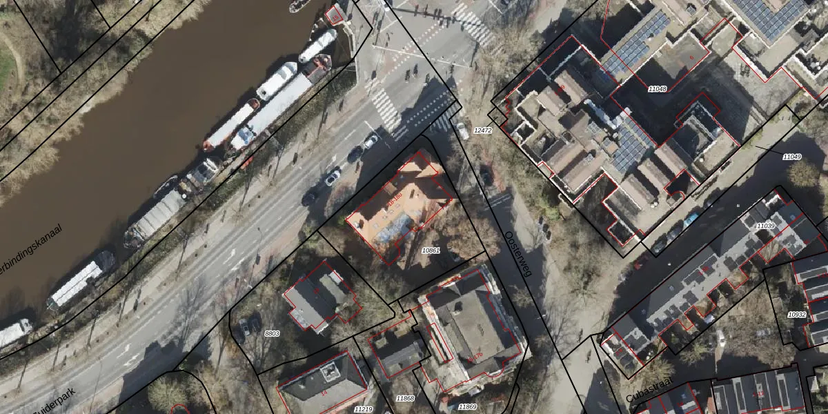 Het adres is gelegen op perceel 10861 in de sectie B en de kadastrale gemeente Groningen. De kadastrale aanduiding is aldus GNG00-B-10861. De gemiddelde perceeloppervlakte in de kadastrale gemeente Groningen is 771,11 m². Dit perceel is met zijn 883 m² dus groter dan gemiddeld. De grootste perceeloppervlakte in de kadastrale gemeente is 31,8 ha. De kleinste oppervlakte bedraagt 0 m². Er zijn 17 adressen aanwezig op het perceel. In de Basisregistratie Kadaster (BRK) werden de grenzen van het perceel geregistreerd op 17-07-2006.
