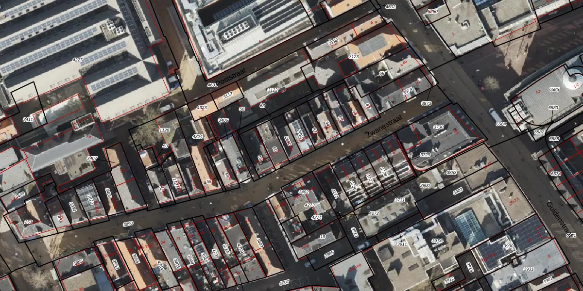 Het perceel waarop Zwanestraat 15-a staat heeft een oppervlakte van 77 m². Dit is een klein perceel. De perceeloppervlakte wordt geregistreerd door het Kadaster. Gedetailleerde informatie over de maten van dit perceel kunt u vinden in het rapport Kadastrale kaart met maatvoering van Zwanestraat 15-a.