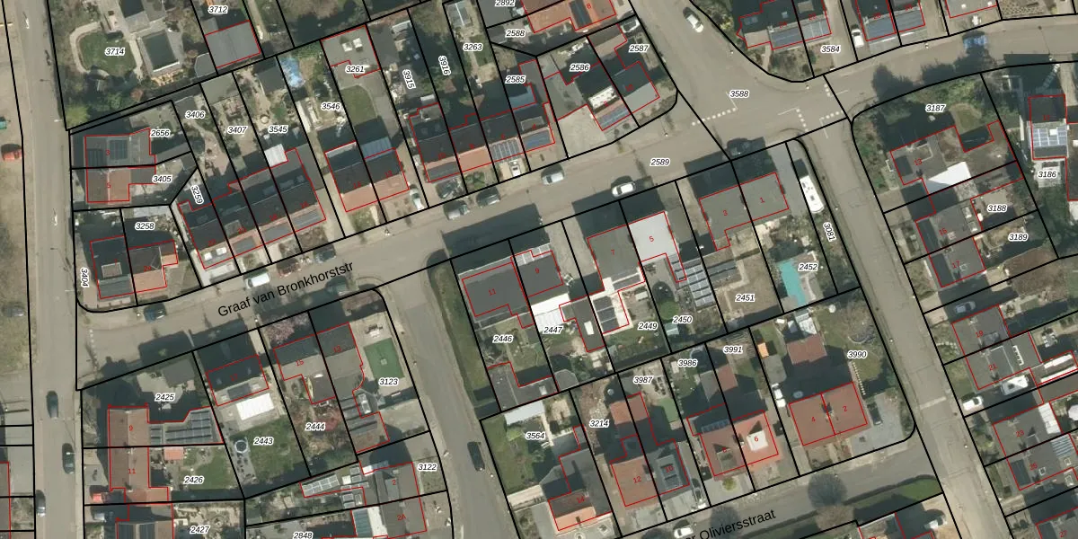 Graaf van Bronkhorststr 9 is gelegen op kadastraal perceel GVD01B2447. Deze kadastrale aanduiding is uniek en wordt gebruikt door het Kadaster om eigendomsrechten en andere zakelijke rechten vast te leggen. Het perceel maakt onderdeel uit van de kadastrale gemeente Gronsveld.