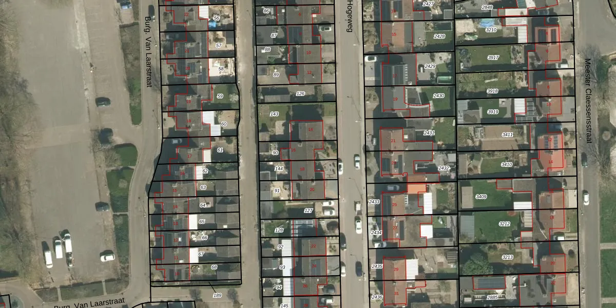 Het perceel waarop Hogeweg 16 staat heeft een oppervlakte van 163 m². Dit is een middelgroot perceel. De perceeloppervlakte wordt geregistreerd door het Kadaster. Gedetailleerde informatie over de maten van dit perceel kunt u vinden in het rapport Kadastrale kaart met maatvoering van Hogeweg 16.