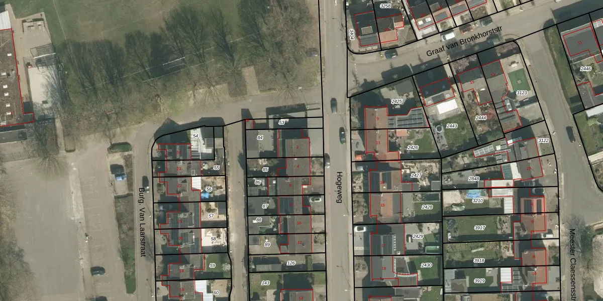 Gebruik de zoekbalk of klik op een perceel voor informatie over de adressen binnen dit perceel.