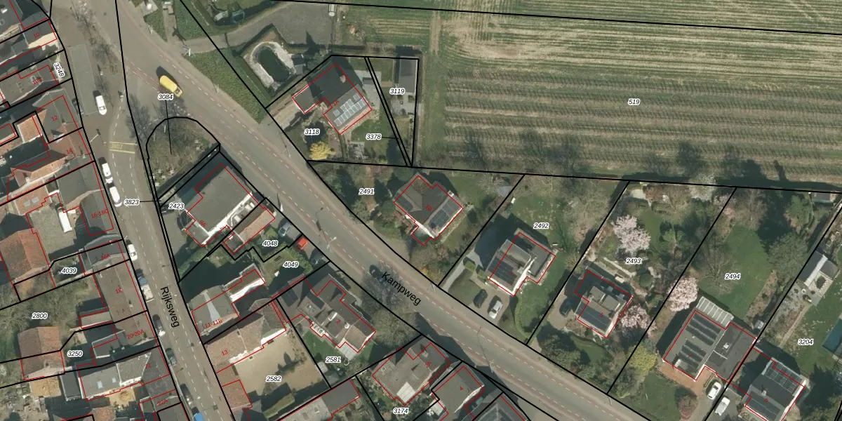 Kampweg 1-B is gelegen op kadastraal perceel GVD01B2491. Deze kadastrale aanduiding is uniek en wordt gebruikt door het Kadaster om eigendomsrechten en andere zakelijke rechten vast te leggen. Het perceel maakt onderdeel uit van de kadastrale gemeente Gronsveld.