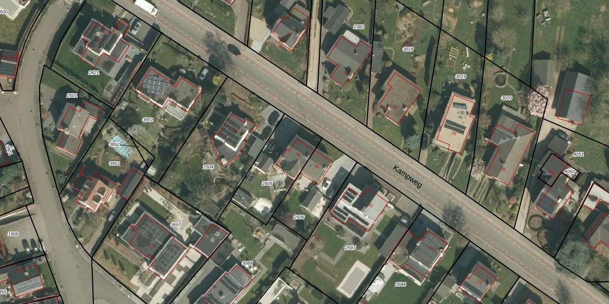 Kampweg 18 is gelegen op kadastraal perceel GVD01B2505. Deze kadastrale aanduiding is uniek en wordt gebruikt door het Kadaster om eigendomsrechten en andere zakelijke rechten vast te leggen. Het perceel maakt onderdeel uit van de kadastrale gemeente Gronsveld.