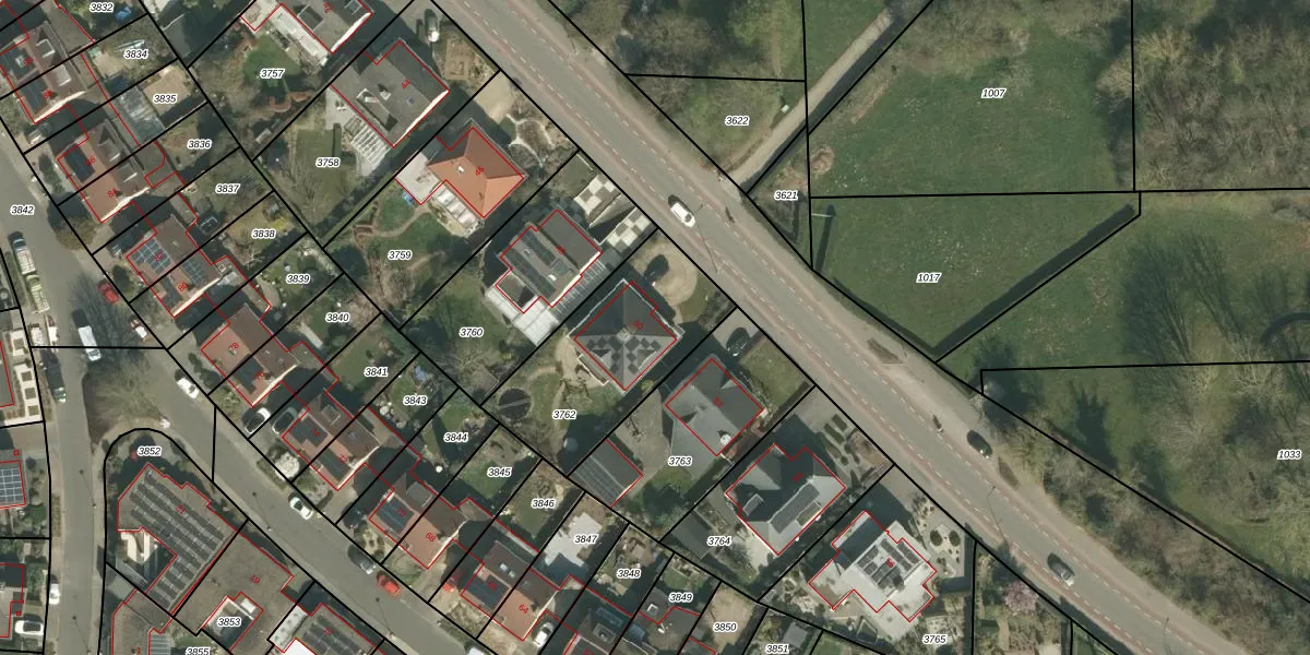 Het adres is gelegen op perceel 3762 in de sectie B en de kadastrale gemeente Gronsveld. De kadastrale aanduiding is aldus GVD01-B-3762. Het perceel is kleiner dan gemiddeld in Gronsveld. Het perceel is 644 m² groot, terwijl het gemiddelde ligt op 912,72 m². Het grootste perceel in de kadastrale gemeente is 3,3 ha. Het kleinste perceel heeft een oppervlakte van 1 m². Er zijn geen andere adressen aanwezig op het perceel. De huidige grenzen van het perceel zijn digitaal in de Basisregistratie Kadaster (BRK) geregistreerd op 23-01-2009.