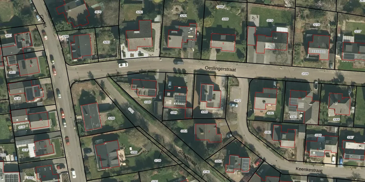 Oeslingerstraat 4 is gelegen op kadastraal perceel GVD01B3349. Deze kadastrale aanduiding is uniek en wordt gebruikt door het Kadaster om eigendomsrechten en andere zakelijke rechten vast te leggen. Het perceel maakt onderdeel uit van de kadastrale gemeente Gronsveld.