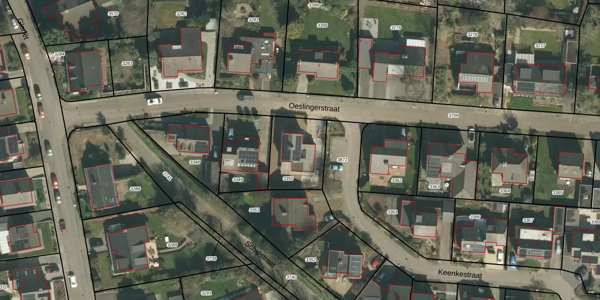 Oeslingerstraat 6 is gelegen op kadastraal perceel GVD01B3350. Deze kadastrale aanduiding is uniek en wordt gebruikt door het Kadaster om eigendomsrechten en andere zakelijke rechten vast te leggen. Het perceel maakt onderdeel uit van de kadastrale gemeente Gronsveld.