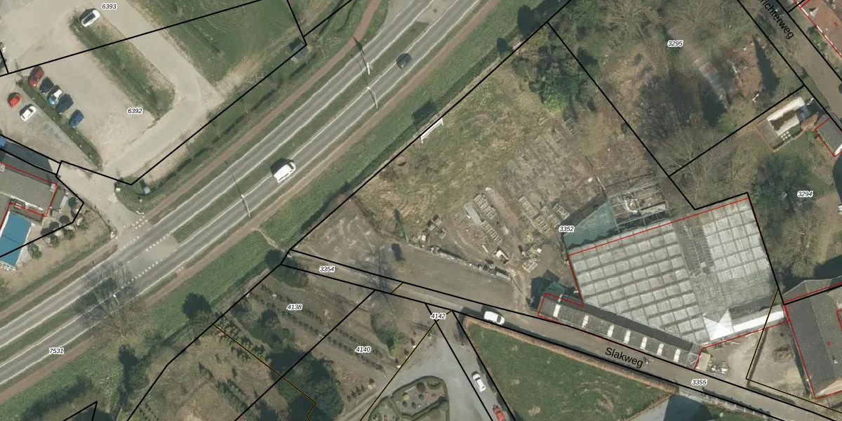 Slakweg 43 is gelegen op kadastraal perceel GVD01A3352. Deze kadastrale aanduiding is uniek en wordt gebruikt door het Kadaster om eigendomsrechten en andere zakelijke rechten vast te leggen. Het perceel maakt onderdeel uit van de kadastrale gemeente Gronsveld.