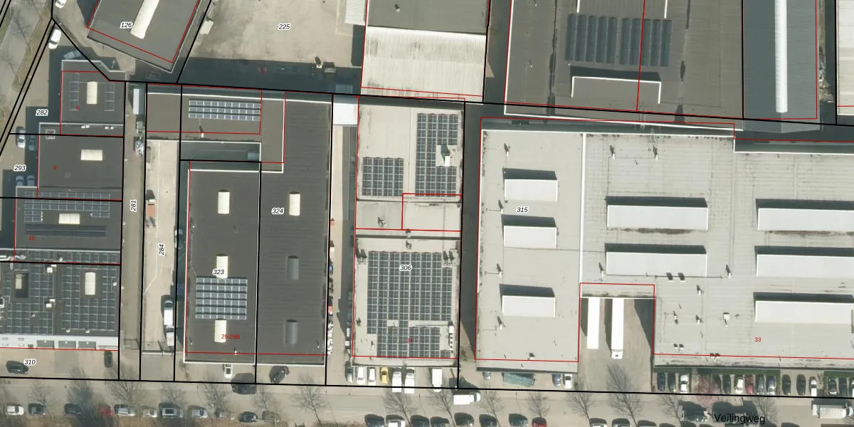 Het perceel waarop Veilingweg 31 staat heeft een oppervlakte van 2100 m². Dit is een zeer groot perceel. De perceeloppervlakte wordt geregistreerd door het Kadaster. Gedetailleerde informatie over de maten van dit perceel kunt u vinden in het rapport Kadastrale kaart met maatvoering van Veilingweg 31.