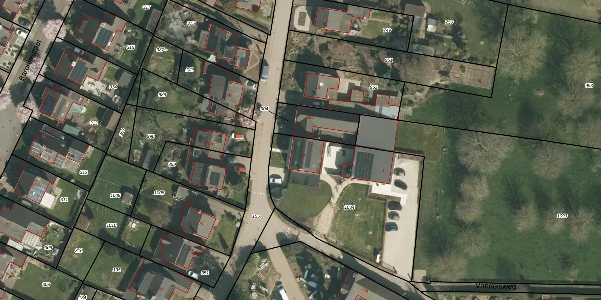 Het perceel waarop Voerenweg 15 staat heeft een oppervlakte van 1725 m². Dit is een zeer groot perceel. De perceeloppervlakte wordt geregistreerd door het Kadaster. Gedetailleerde informatie over de maten van dit perceel kunt u vinden in het rapport Kadastrale kaart met maatvoering van Voerenweg 15.