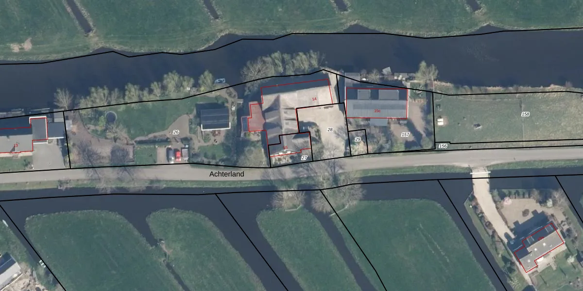 Het perceel waarop Achterland 15 staat heeft een oppervlakte van 134 m². Dit is een middelgroot perceel. De perceeloppervlakte wordt geregistreerd door het Kadaster. Gedetailleerde informatie over de maten van dit perceel kunt u vinden in het rapport Kadastrale kaart met maatvoering van Achterland 15.