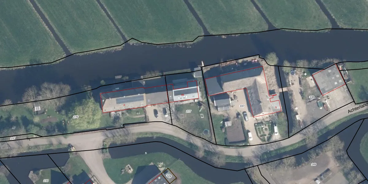 Achterland 4-B is gelegen op kadastraal perceel AMS02G277. Deze kadastrale aanduiding is uniek en wordt gebruikt door het Kadaster om eigendomsrechten en andere zakelijke rechten vast te leggen. Het perceel maakt onderdeel uit van de kadastrale gemeente Groot-Ammers.