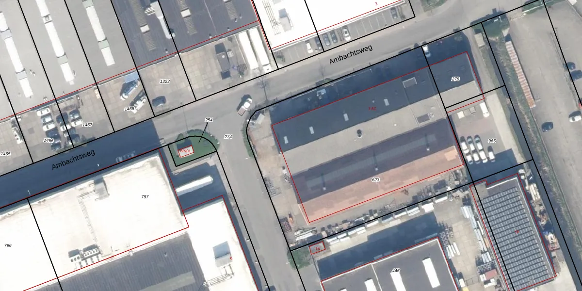 Het perceel waarop Ambachtsweg 5-J staat heeft een oppervlakte van 3250 m². Dit is een zeer groot perceel. De perceeloppervlakte wordt geregistreerd door het Kadaster. Gedetailleerde informatie over de maten van dit perceel kunt u vinden in het rapport Kadastrale kaart met maatvoering van Ambachtsweg 5-J.