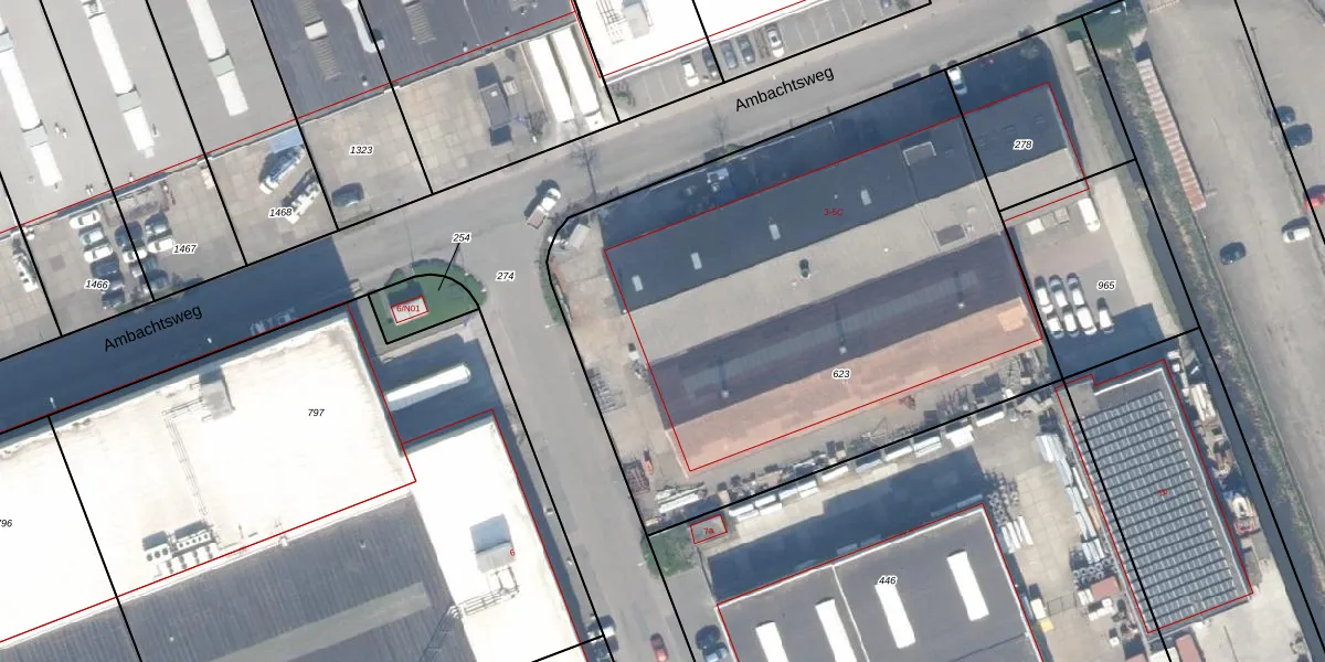 Het perceel waarop Ambachtsweg 5-K staat heeft een oppervlakte van 3250 m². Dit is een zeer groot perceel. De perceeloppervlakte wordt geregistreerd door het Kadaster. Gedetailleerde informatie over de maten van dit perceel kunt u vinden in het rapport Kadastrale kaart met maatvoering van Ambachtsweg 5-K.