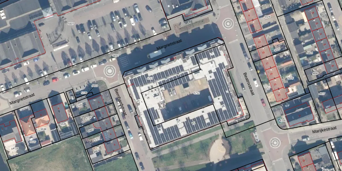 Het perceel waarop Bernhardstraat 105 staat heeft een oppervlakte van 1547 m². Dit is een zeer groot perceel. De perceeloppervlakte wordt geregistreerd door het Kadaster. Gedetailleerde informatie over de maten van dit perceel kunt u vinden in het rapport Kadastrale kaart met maatvoering van Bernhardstraat 105.