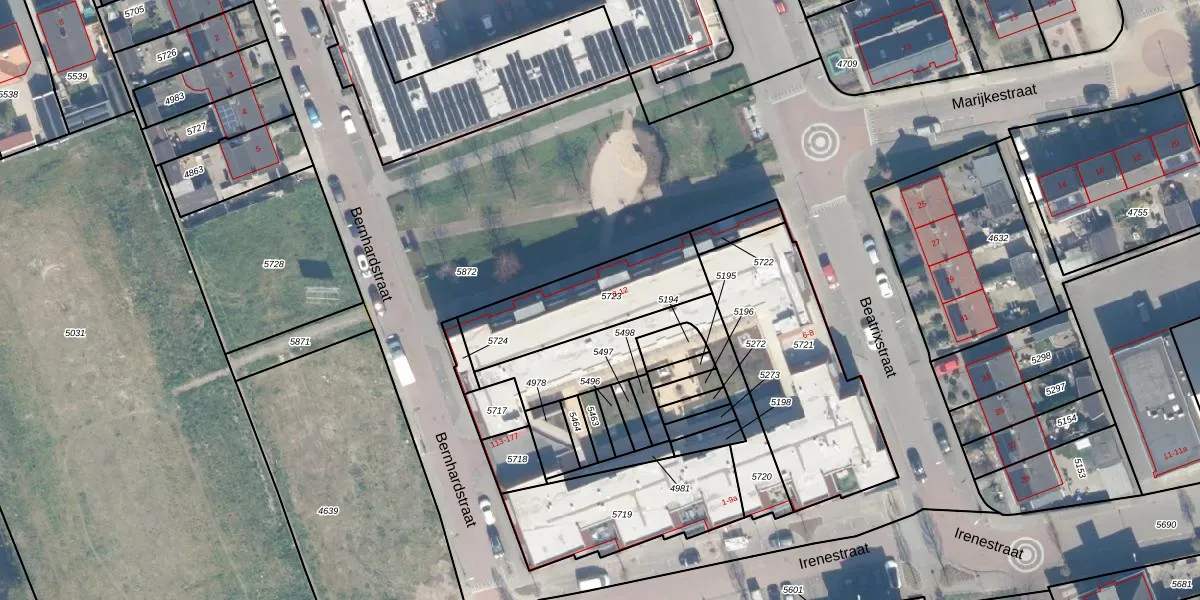 Het perceel waarop Bernhardstraat 171 staat heeft een oppervlakte van 426 m². Dit is een groot perceel. De perceeloppervlakte wordt geregistreerd door het Kadaster. Gedetailleerde informatie over de maten van dit perceel kunt u vinden in het rapport Kadastrale kaart met maatvoering van Bernhardstraat 171.