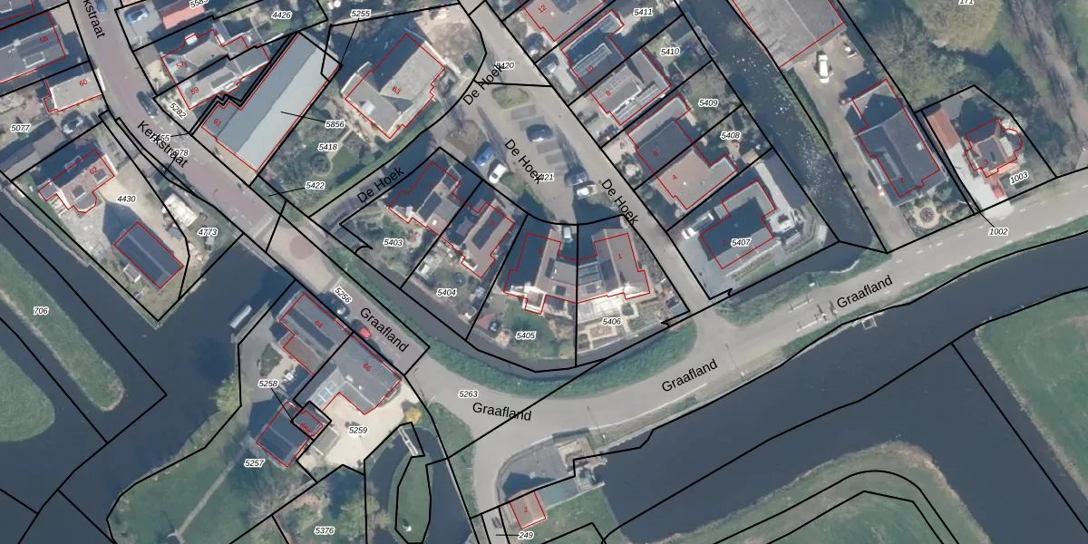 Het perceel waarop De Hoek 3 staat heeft een oppervlakte van 413 m². Dit is een groot perceel. De perceeloppervlakte wordt geregistreerd door het Kadaster. Gedetailleerde informatie over de maten van dit perceel kunt u vinden in het rapport Kadastrale kaart met maatvoering van De Hoek 3.