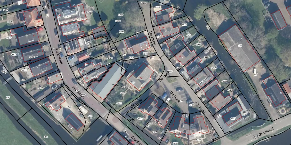 De Hoek 7-B is gelegen op kadastraal perceel AMS02A5418. Deze kadastrale aanduiding is uniek en wordt gebruikt door het Kadaster om eigendomsrechten en andere zakelijke rechten vast te leggen. Het perceel maakt onderdeel uit van de kadastrale gemeente Groot-Ammers.