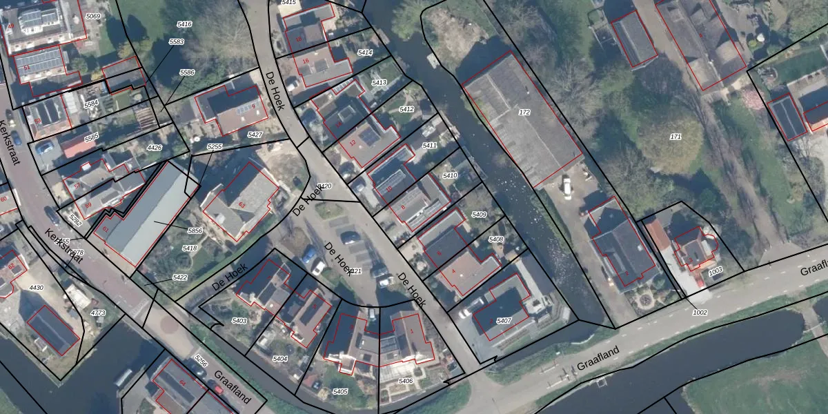 De Hoek 8 is gelegen op kadastraal perceel AMS02A5410. Deze kadastrale aanduiding is uniek en wordt gebruikt door het Kadaster om eigendomsrechten en andere zakelijke rechten vast te leggen. Het perceel maakt onderdeel uit van de kadastrale gemeente Groot-Ammers.