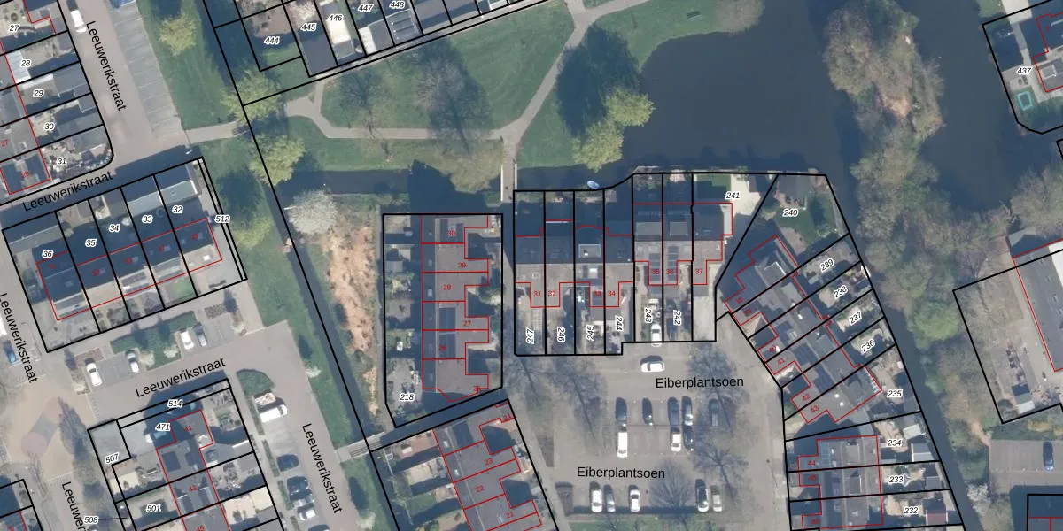 Gebruik de zoekbalk of klik op een perceel voor informatie over de adressen binnen dit perceel.