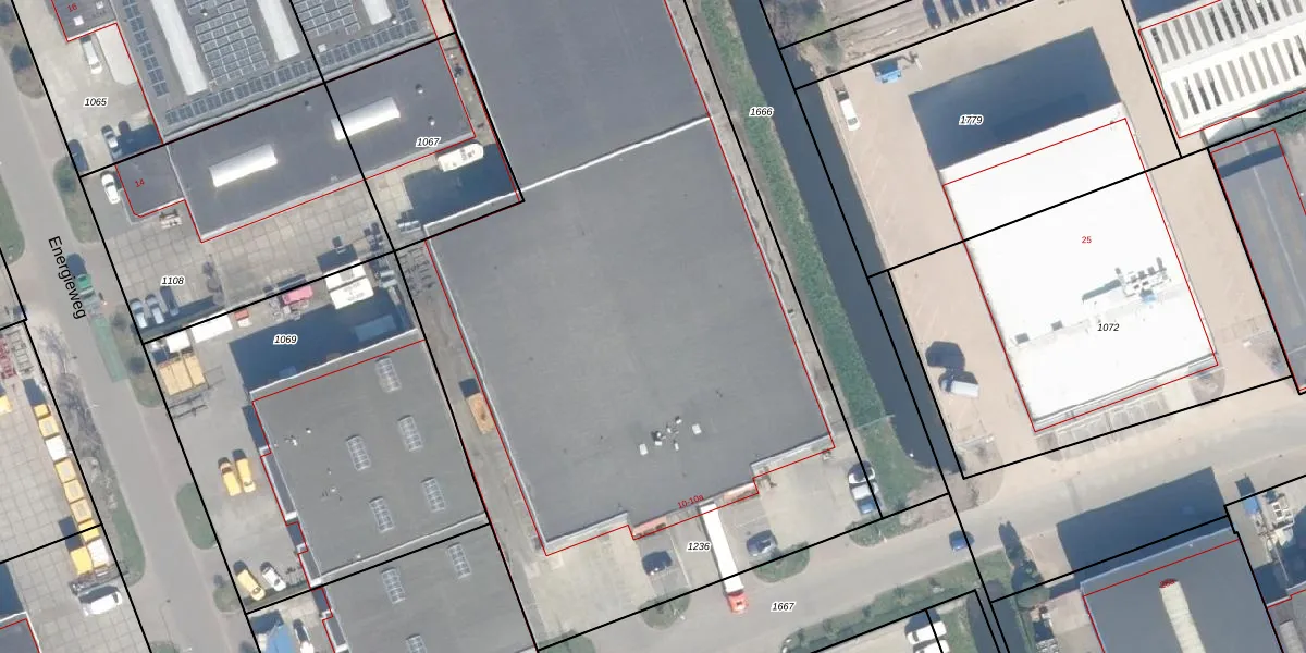 Het perceel waarop Energieweg 10 staat heeft een oppervlakte van 5958 m². Dit is een zeer groot perceel. De perceeloppervlakte wordt geregistreerd door het Kadaster. Gedetailleerde informatie over de maten van dit perceel kunt u vinden in het rapport Kadastrale kaart met maatvoering van Energieweg 10.