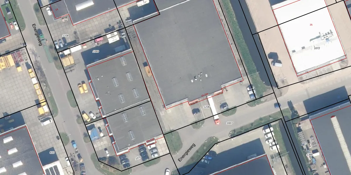 Het perceel waarop Energieweg 10-a staat heeft een oppervlakte van 5958 m². Dit is een zeer groot perceel. De perceeloppervlakte wordt geregistreerd door het Kadaster. Gedetailleerde informatie over de maten van dit perceel kunt u vinden in het rapport Kadastrale kaart met maatvoering van Energieweg 10-a.