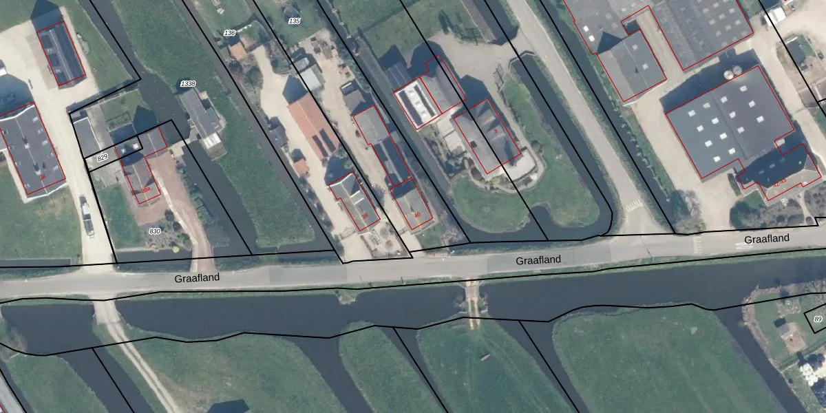 Graafland 40 is gelegen op kadastraal perceel AMS02E135. Deze kadastrale aanduiding is uniek en wordt gebruikt door het Kadaster om eigendomsrechten en andere zakelijke rechten vast te leggen. Het perceel maakt onderdeel uit van de kadastrale gemeente Groot-Ammers.