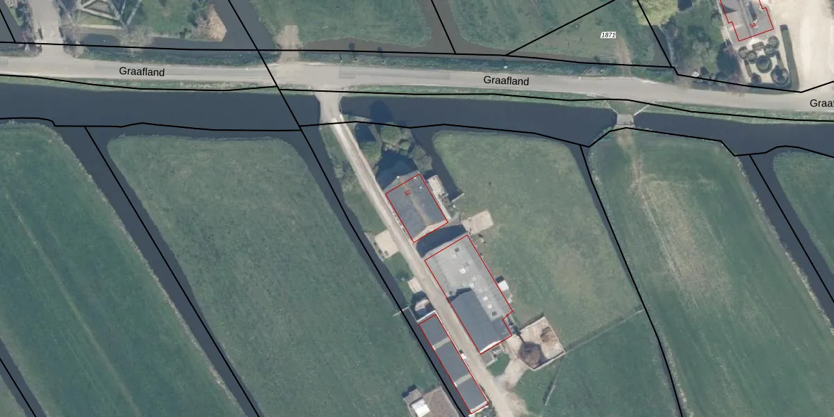 Het perceel waarop Graafland 52 staat heeft een oppervlakte van 1,8 ha. Dit is een zeer groot perceel. De perceeloppervlakte wordt geregistreerd door het Kadaster. Gedetailleerde informatie over de maten van dit perceel kunt u vinden in het rapport Kadastrale kaart met maatvoering van Graafland 52.