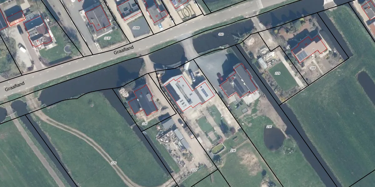 Het perceel waarop Graafland 7-a staat heeft een oppervlakte van 2560 m². Dit is een zeer groot perceel. De perceeloppervlakte wordt geregistreerd door het Kadaster. Gedetailleerde informatie over de maten van dit perceel kunt u vinden in het rapport Kadastrale kaart met maatvoering van Graafland 7-a.