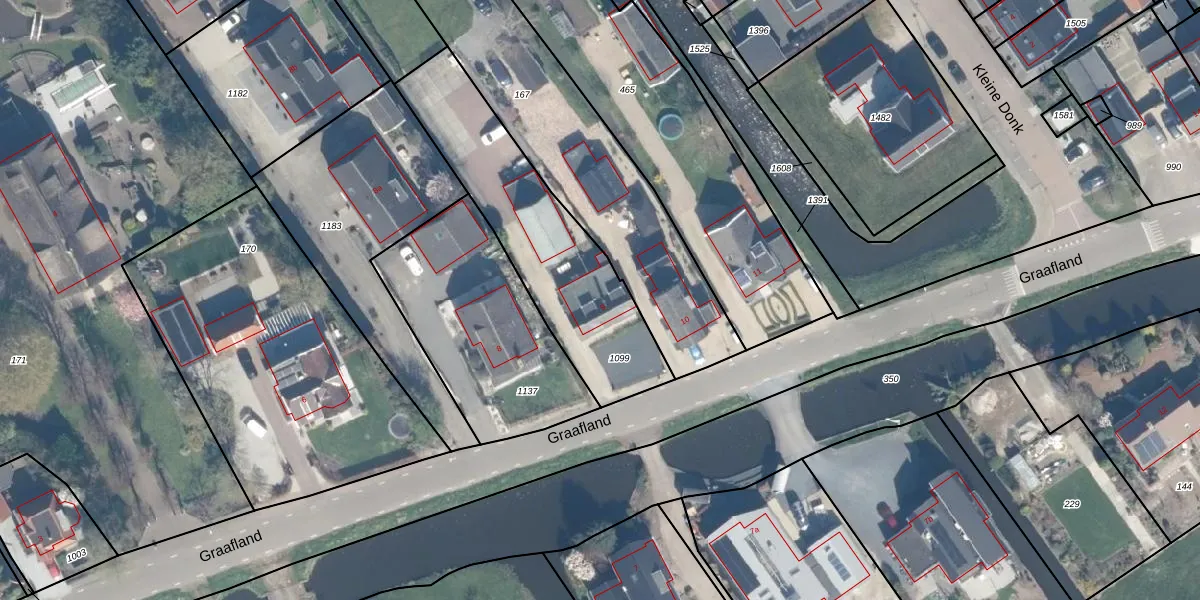 Het perceel waarop Graafland 9 staat heeft een oppervlakte van 895 m². Dit is een groot perceel. De perceeloppervlakte wordt geregistreerd door het Kadaster. Gedetailleerde informatie over de maten van dit perceel kunt u vinden in het rapport Kadastrale kaart met maatvoering van Graafland 9.
