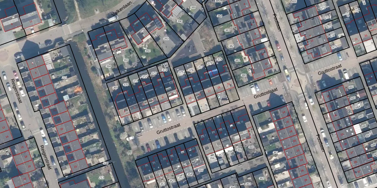 Het perceel waarop Gruttostraat 13 staat heeft een oppervlakte van 155 m². Dit is een middelgroot perceel. De perceeloppervlakte wordt geregistreerd door het Kadaster. Gedetailleerde informatie over de maten van dit perceel kunt u vinden in het rapport Kadastrale kaart met maatvoering van Gruttostraat 13.