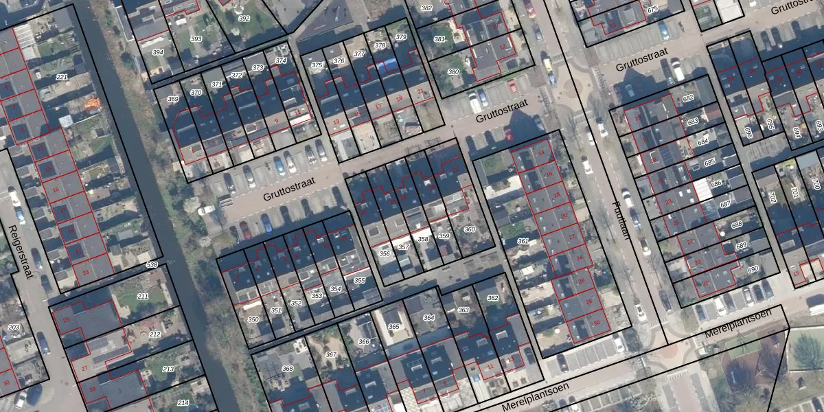 Het perceel waarop Gruttostraat 18 staat heeft een oppervlakte van 141 m². Dit is een middelgroot perceel. De perceeloppervlakte wordt geregistreerd door het Kadaster. Gedetailleerde informatie over de maten van dit perceel kunt u vinden in het rapport Kadastrale kaart met maatvoering van Gruttostraat 18.