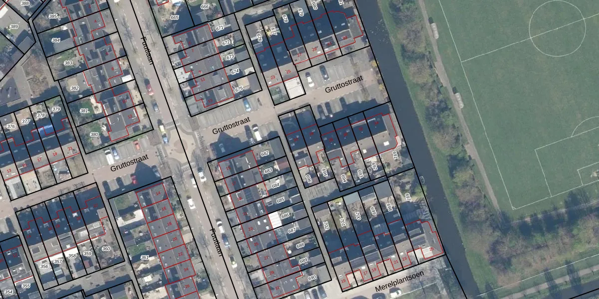 Het perceel waarop Gruttostraat 24 staat heeft een oppervlakte van 141 m². Dit is een middelgroot perceel. De perceeloppervlakte wordt geregistreerd door het Kadaster. Gedetailleerde informatie over de maten van dit perceel kunt u vinden in het rapport Kadastrale kaart met maatvoering van Gruttostraat 24.