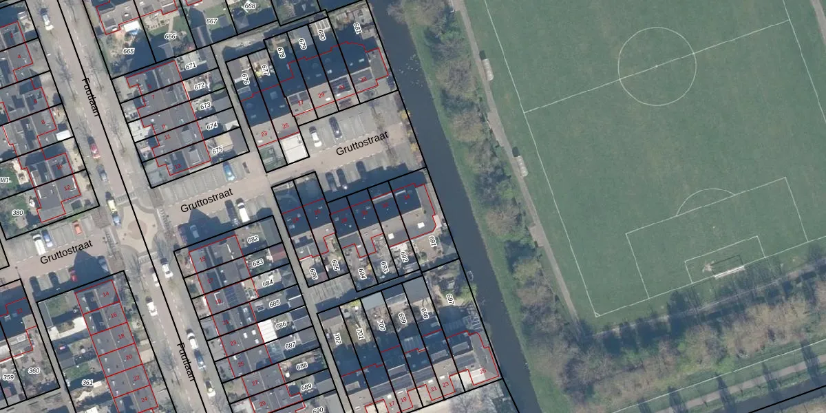 Gebruik de zoekbalk of klik op een perceel voor informatie over de adressen binnen dit perceel.
