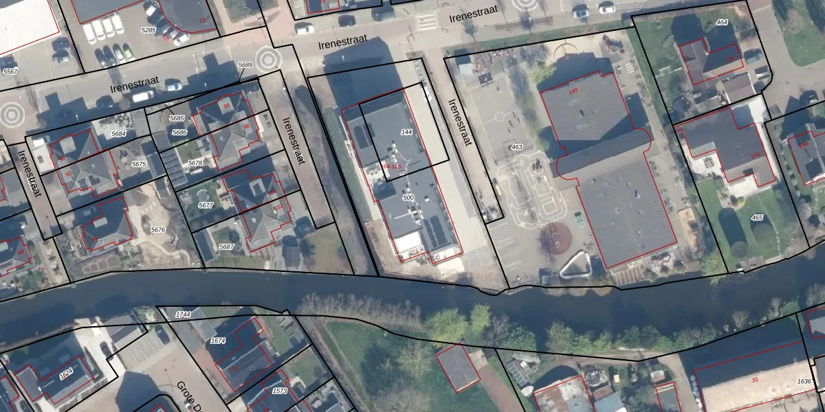 Irenestraat 106 is gelegen op kadastraal perceel AMS02D500. Deze kadastrale aanduiding is uniek en wordt gebruikt door het Kadaster om eigendomsrechten en andere zakelijke rechten vast te leggen. Het perceel maakt onderdeel uit van de kadastrale gemeente Groot-Ammers.