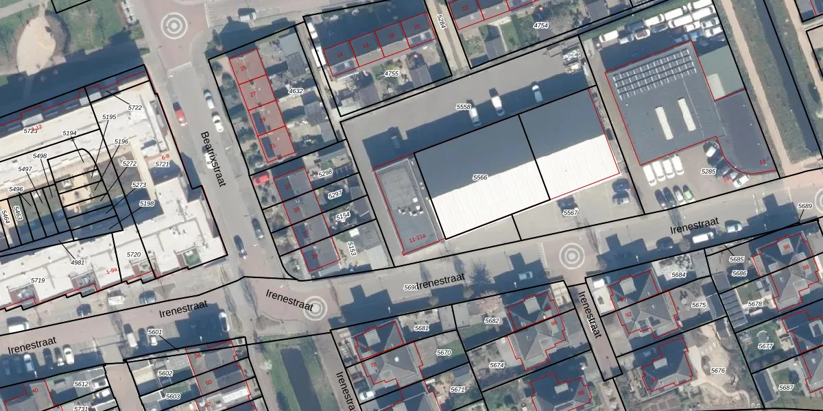 Het perceel waarop Irenestraat 11-a staat heeft een oppervlakte van 1260 m². Dit is een zeer groot perceel. De perceeloppervlakte wordt geregistreerd door het Kadaster. Gedetailleerde informatie over de maten van dit perceel kunt u vinden in het rapport Kadastrale kaart met maatvoering van Irenestraat 11-a.