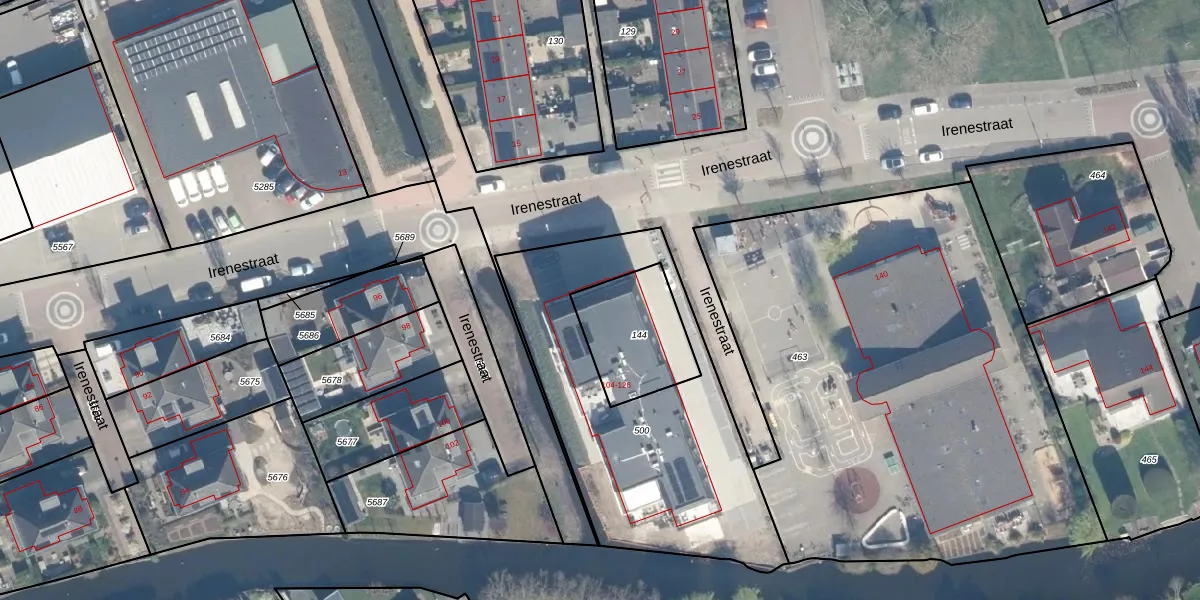 Het perceel waarop Irenestraat 118 staat heeft een oppervlakte van 320 m². Dit is een groot perceel. De perceeloppervlakte wordt geregistreerd door het Kadaster. Gedetailleerde informatie over de maten van dit perceel kunt u vinden in het rapport Kadastrale kaart met maatvoering van Irenestraat 118.